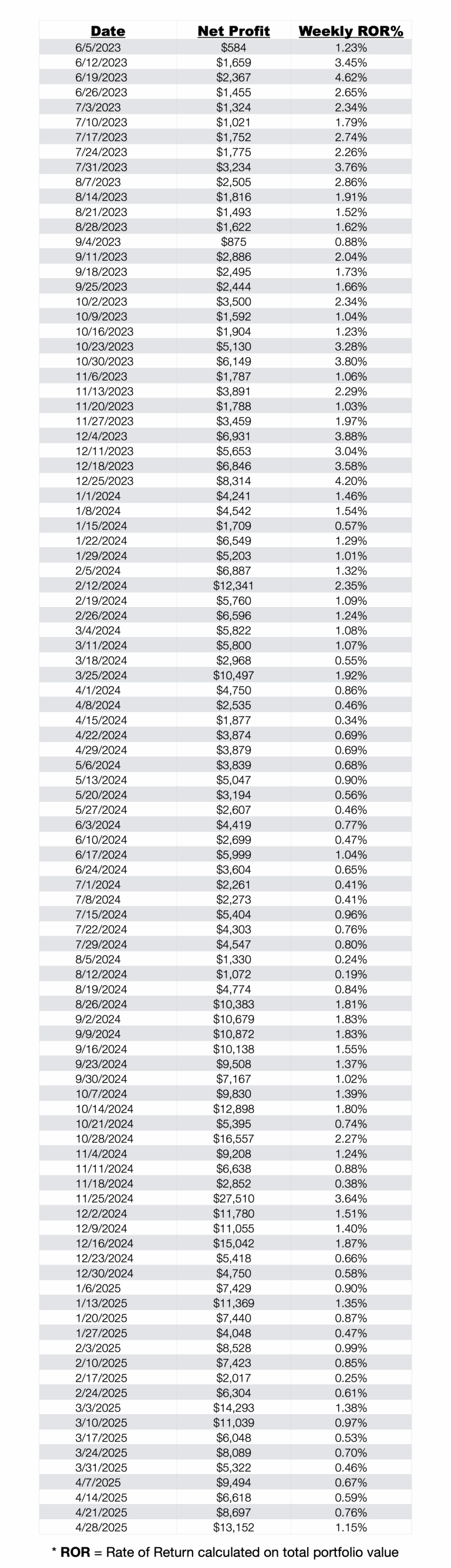 Our framework is based on weekly results and compounding, not monthly.